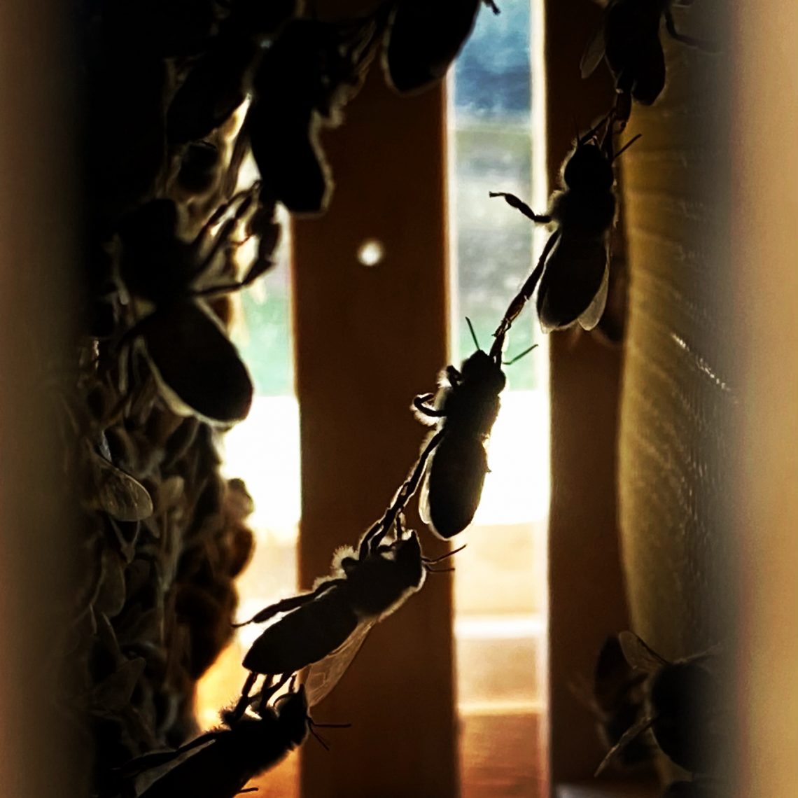 Beim Naturbau der Waben machen die Bienen eine sogenannte Baukette. Sie dient den Bienen quasi als Gerüst auf der Baustelle.