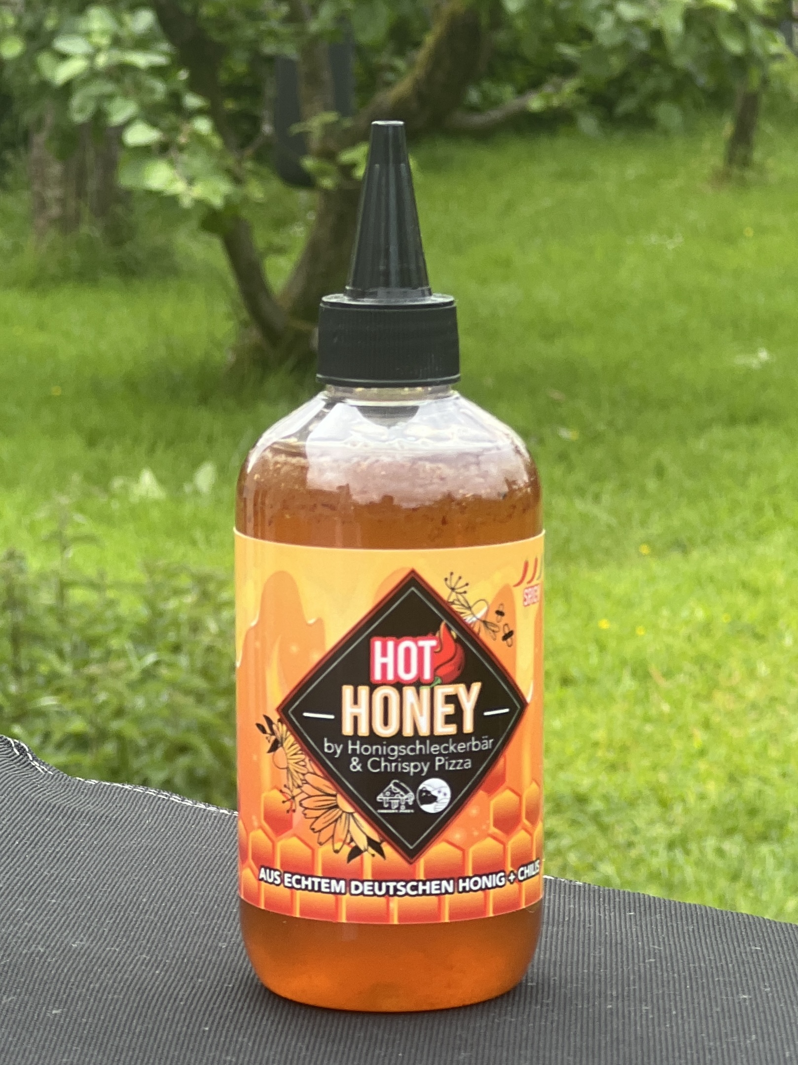 Dieser Hot Honey ist eine Kooperation von Chrispy.Pizza und dem Honigschleckerbär.